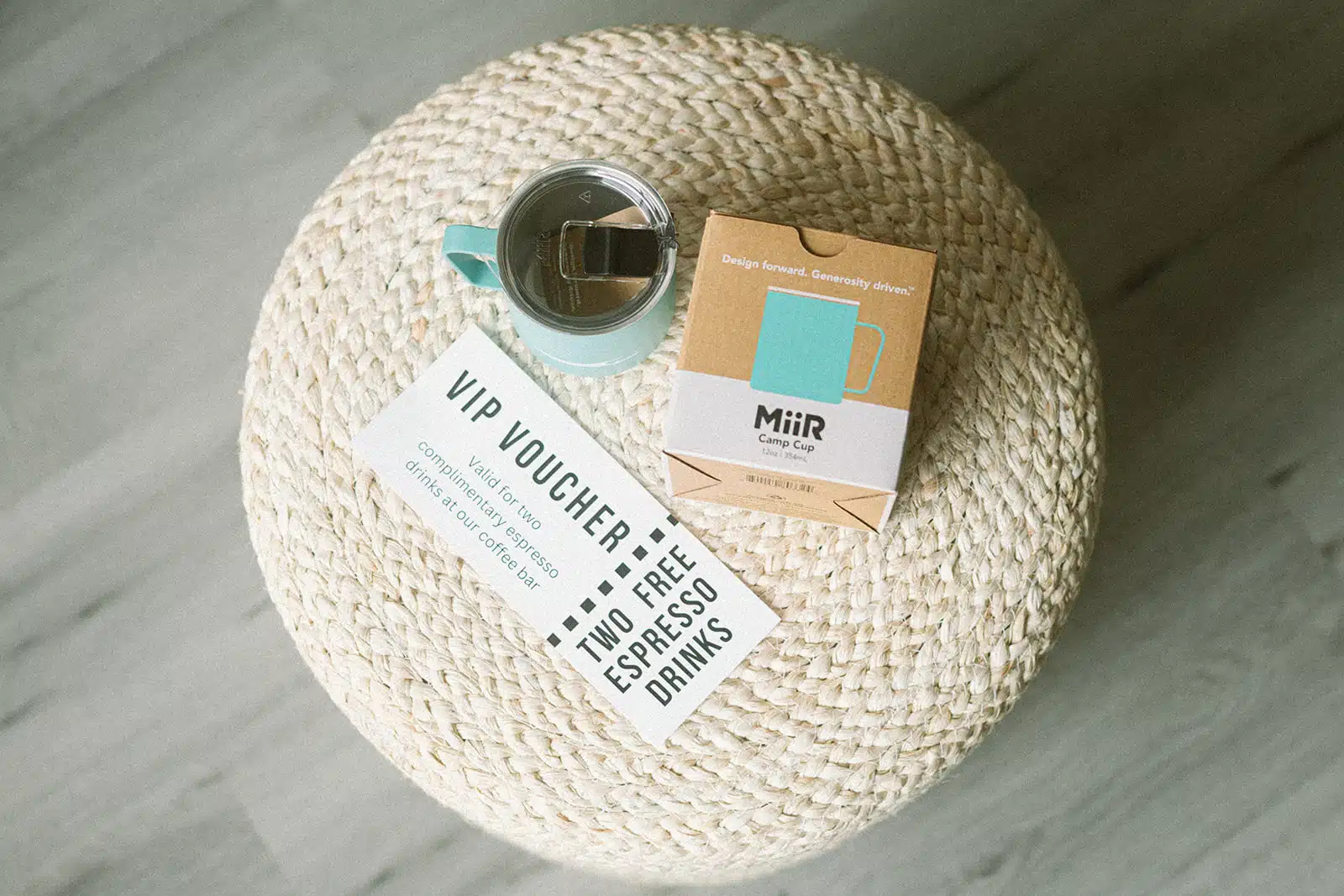 Adrift Hotel: Two Miir insulated travel coffee mugs, two espresso drinks from the coffee bar & 1 pm checkout