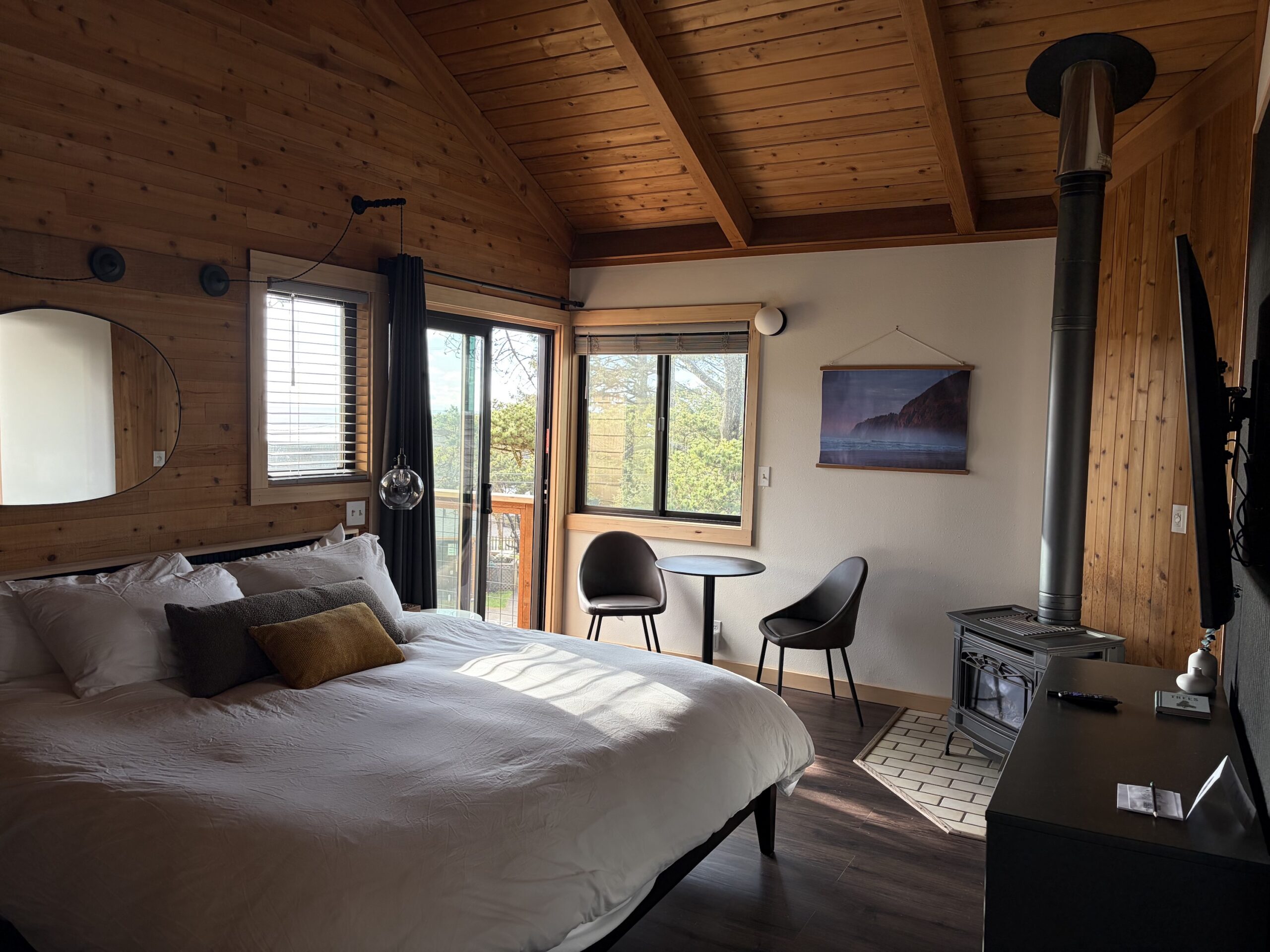 The recently remodeled Luxe Inn King rooms at the Inn at Manzanita offer a cozy and inviting retreat, each featuring a comfortable king bed, gas fireplace, and a luxurious soaking tub. Guests can enjoy the convenience of a private deck or balcony, and modern amenities like free WiFi, flat-screen TV, and plush bathrobes. Additionally, the room has a small fridge, microwave, and coffee and tea station. All our rooms are pet-friendly and designed to accommodate couples. Set in a tranquil, garden-like setting just steps from the beach, these rooms provide the perfect blend of comfort, romance, and relaxation. Rooms are located in the Main Inn Building. Stairs may be required to access certain room types, please contact guest services when booking if that will be an issue.
